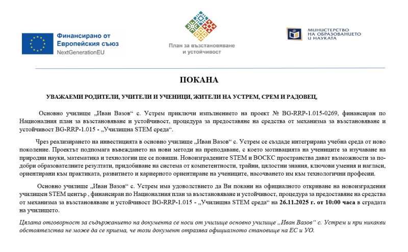 При използване на информацията от медии, позоваването на сайта на ОУ "Иван Вазов"-с. Устрем, община Тополовград е задължително!